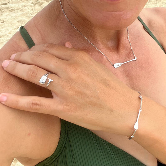 After 15 years of SUP, teaching thousands to paddelboard and traveling to 30 different countries to SUP, there is something so special about the sport and the people no matter where you go! So, when I wear this jewelry it's not just a connection to the sport, but the people and the many friends I have made along the way. I am sure you'll feel the same way too when you wear it!