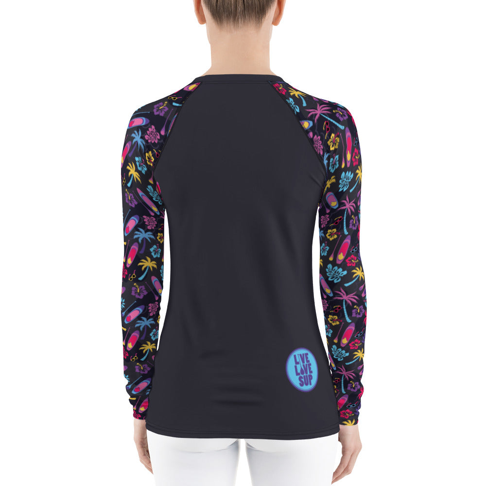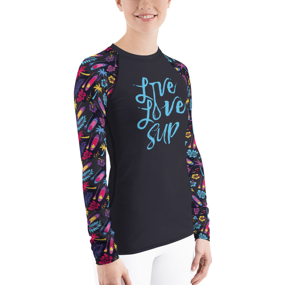 Women's Live Love SUP Board and Paddle Pattern Rashguard – UPF40 Long-Sleeve Activewear