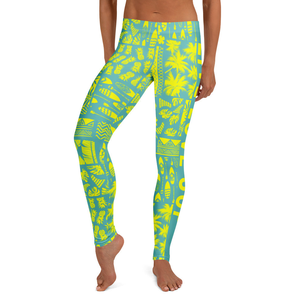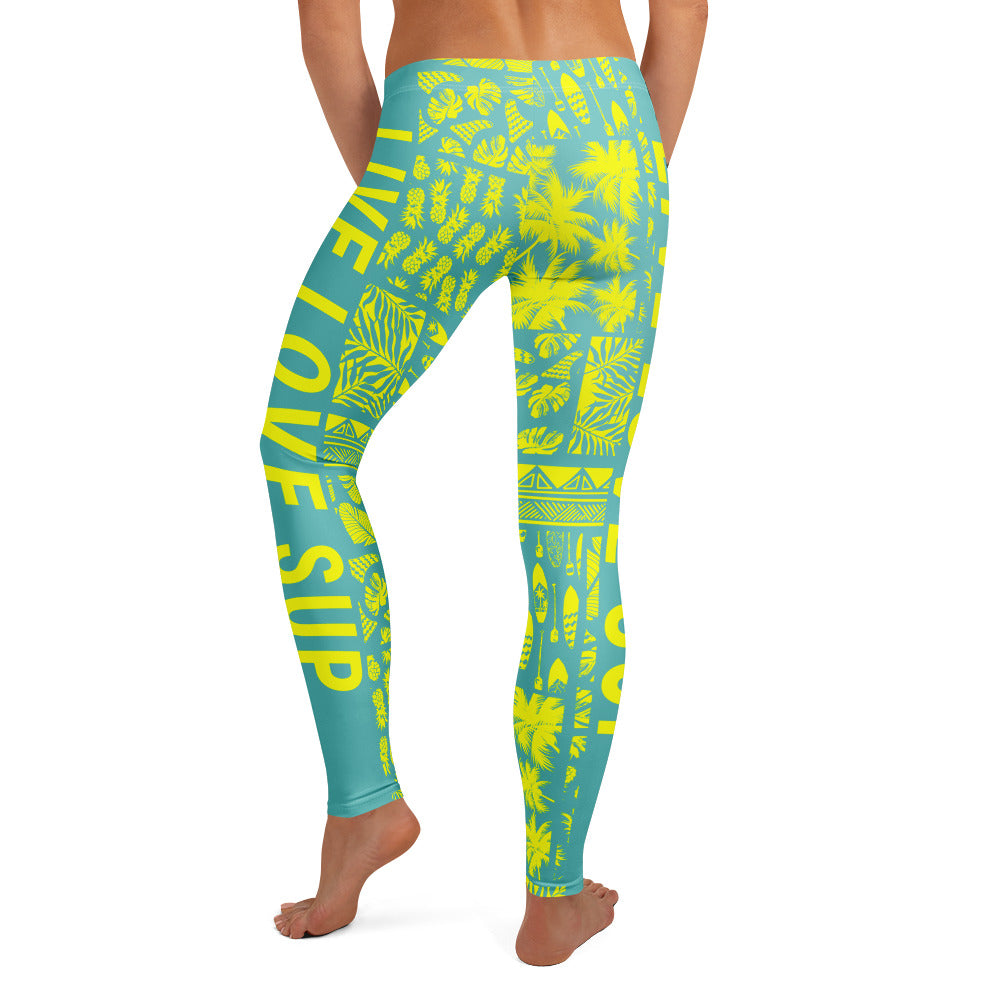 SUP Hawaiian Lifestyle Neon Yellow & Turquoise Paddle Surf Leggings – LIVE LOVE SUP
