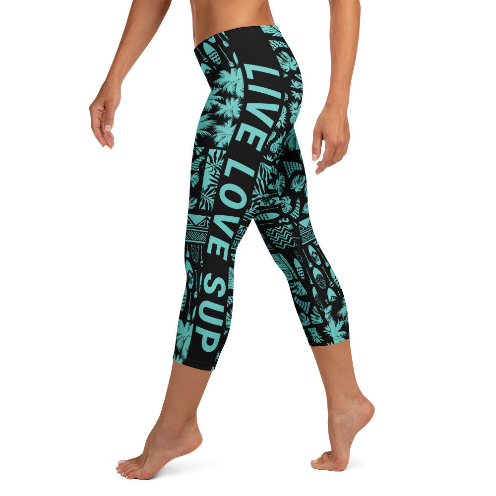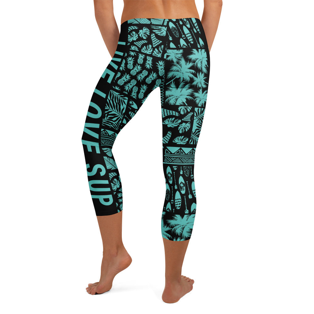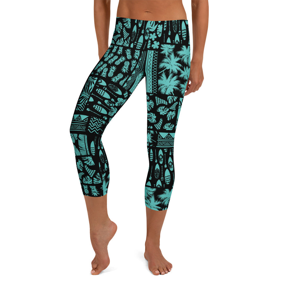 SUP Hawaiian Lifestyle Turquoise Paddle Board Surf Capri 3/4 Leggings